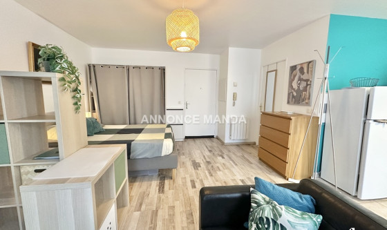 Logement Manda ! À louer – Grand studio meublé de 32 m², lumineux et au calme Situé côté cour, ce grand studio meublé de 32 m² a été récemment rénové et offre un cadre de vie agréable et paisible. L'appartement se compose d'une pièce principale lumineuse avec une cuisine ouverte équipée, un coin salon et un coin nuit bien délimité. La salle de bain dispose d'une baignoire. Le logement est idéalement situé : commerces, transports et commodités à proximité immédiate. Métro ligne 7 à environ 8 minutes à pied Bus au pied de l'immeuble Un bien confortable, fonctionnel et prêt à vivre ! Référence du bien : MANDA-69886