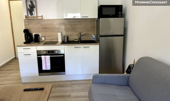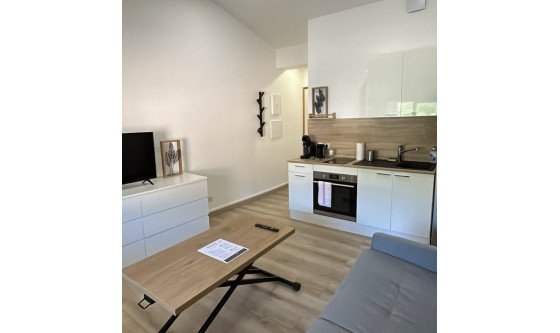 Le studio dispose : - d'un canapé lit-convertible confortable - une cuisine équipée (réfrigérateur, plaque de cuisson, micro-ondes, four, ustensiles de cuisine, cafetière) - une salle de bain spacieuse avec WC - une machine à laver - connexion WIFI et télévision - places de stationnement gratuites Le linge de lit et les serviettes sont fournis pour 2 personnes. Pour vous éviter de courir dès votre arrivée, nous mettons à votre disposition : - du café - 1 rouleau de papier wc - 1 liquide vaisselle et 1 éponge - 1 gel douche / shampoing - 1 sac poubelle cuisine et salle de bain 15min de la Centrale de BUGEY 10min en voiture des Grottes de la Balme 5min en vélo de la Via Rhôna