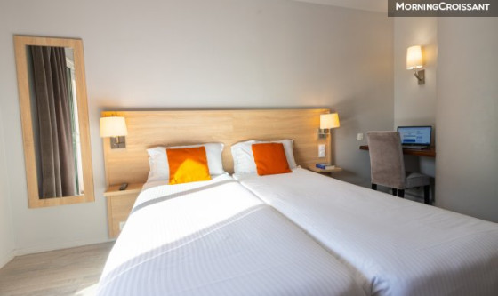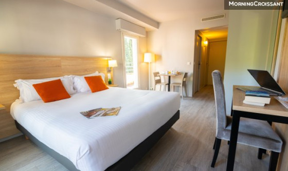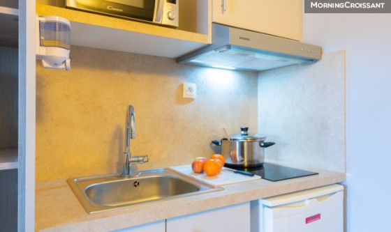 Le studio double de 20m², climatisé, pour 2 personnes, se compose d'un espace de vie avec un lit double, d'une salle de bain et d'une TV LCD. La cuisine dispose d'un micro-onde, d'un réfrigérateur, de plaques vitrocéramiques et d'une hotte aspirante. La vaisselle est également fournie. Sanitaires : Baignoire, WC. Couchage : Lit double. Accès Wi-Fi gratuit dans tous les appartements. La résidence propose également des services additionnels payables sur place : - Petit déjeuner (16.50€/adulte/jour et 6€/enfant) - Animaux de compagnie : 5€/jour, 30€/semaine et 60€/mois - Parking sous-terrain : 7€/jour, 30€/semaine et 60€/mois - Piscine extérieure ouverte d'avril à fin septembre - Pas de laverie dans la résidence Le ménage peut être ajouté en supplément de 90€/mois, à régler à la réception. Dans le cadre d'une location saisonnière, en plus du loyer mensuel, une taxe de séjour d'un montant qui varie par nuit et par personne, sera à régler directement auprès de la résidence.