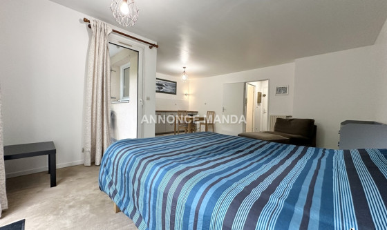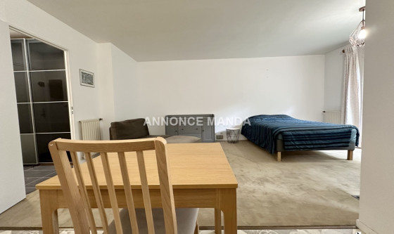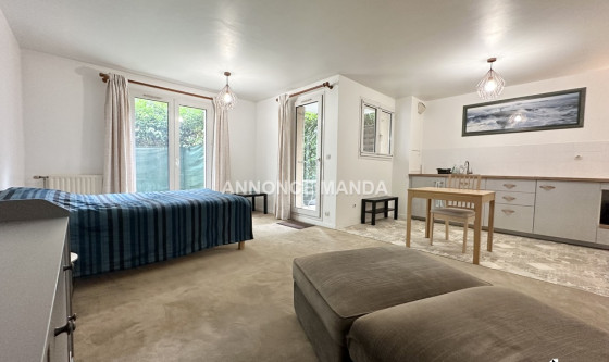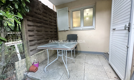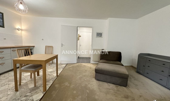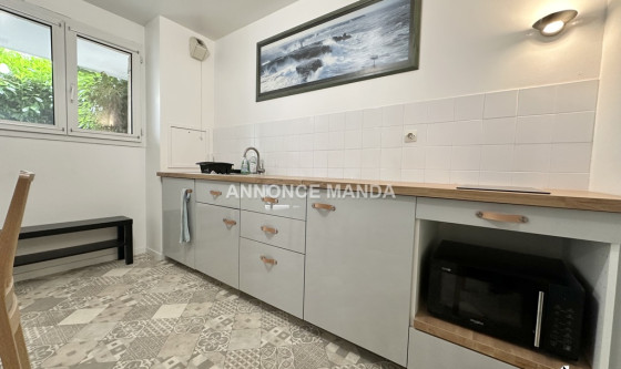 Logement Manda ! Studio meublé en rez-de-jardin – 37 m² Ce studio de 37 m², situé en rez-de-jardin, offre un cadre de vie confortable et fonctionnel. Il se compose d'une entrée avec dressing, d'une salle de bain équipée d'une douche et de WC, ainsi que d'un espace cuisine entièrement aménagé et ouvert sur un séjour avec coin nuit (lit inclus). Entièrement meublé, le logement bénéficie d'une belle luminosité grâce à deux portes-fenêtre donnant accès à une terrasse privative, équipée d'une table et de chaises, ainsi qu'au jardin. Une place de stationnement dédiée est incluse en sous-sol. Référence du bien : MANDA-55866