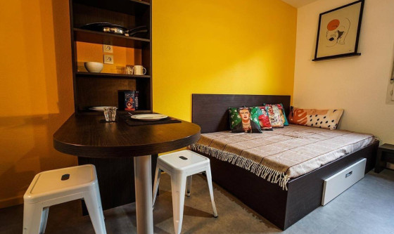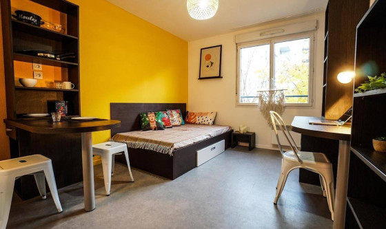 Carré Villon propose 109 apparts de type studio, T1 ou T2 classiques avec ou sans balcons ainsi que des T2 mezzanine. Meublés et aménagés avec style, ils disposent tous d'un coin bureau, d'une kitchenette équipée, d'une salle de bain privative et d'un lit avec kit linge à disposition. Entièrement imaginée pour offrir aux étudiants des conditions de vie et de travail optimales, elle dispose d'une gamme complète de services et avantages tels que la connexion Wifi illimitée dans chaque logement, l'accès aux espaces de détente, de co-working ainsi qu'aux espaces verts communs, une laverie automatique avec sèche-linge, parking privé… Il ne te reste plus qu'à poser tes valises, bienvenue chez toi ! Mise à jour le 03/12/2025 Ref : 963