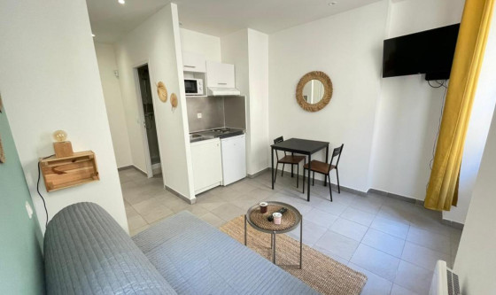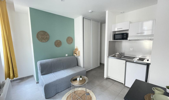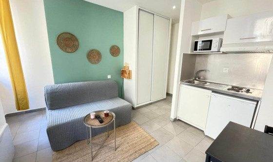 Idéalement situé proche Rue de la république côté Joliette, studio récemment rénové. Ce bien est entièrement meublé et équipé : - Une entrée avec placard - Une pièce à vivre : clic clac télévision, table basse, table et chaises - Cuisine ouverte aménagée et équipée : frigo, micro-onde, plaque et hotte, vaisselle - Une salle d'eau : douche, rangements, WC, machine à laver Les charges comprennent : Internet, l'eau froide, la taxe ordure ménagère et l'entretien des parties communes Ce logement est proche de toutes commodités, commerces et transports en communs (TRAM et METRO) Possibilité d'avoir une place de parking en sus du loyer, 85€/ mois Les informations sur les risques auxquels ce bien est exposé sont disponibles sur le site Géorisques : www. georisques. gouv. fr