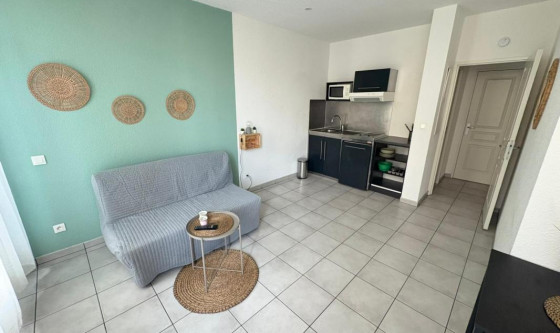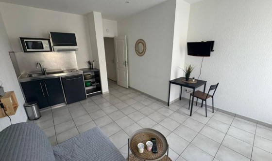 Sur la rue de la République, studio meublé comprenant une entrée avec placard, une pièce à vivre (clic-clac, table basse, table et chaise, télévision) avec cuisine ouverte aménagée (mobilier, plaque, hotte, micro-ondes, frigo, vaisselle), une salle d'eau avec WC et un balconnet. Le bien ne comporte pas de machine à laver. Les charges comprennent l'eau froide, l'entretien des parties communes, la taxe d'ordures ménagères et la box ADSL.