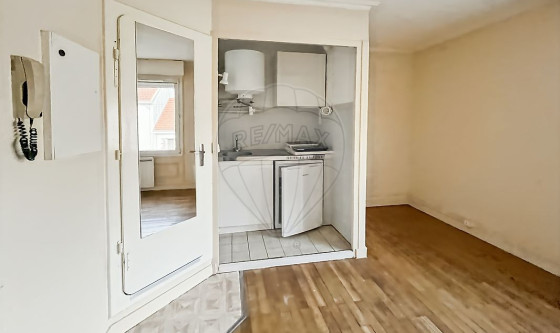 Studio en bon état d'une surface habitable de 18.08m² au premier étage d'une petite copropriété. Comprenant un placard dans la pièce de vie, un coin kitchenette ainsi qu'une salle d'eau avec WC. L'appartement est disponible de suite.