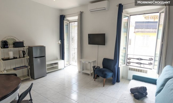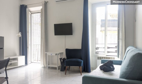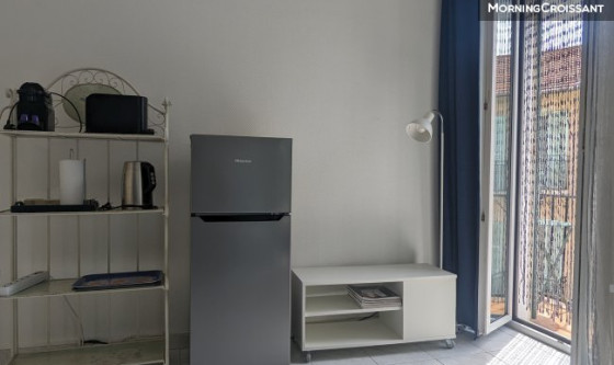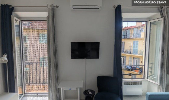 A seulement 1 minute de la Place Masséna, au pied du tram, restaurants et commerces, très joli Studio meublé tout confort avec un balcon profitant d'une situation exceptionnelle. Ce grand studio très spacieux (26m2) a été refait à neuf récemment par les propriétaires. Il est composé d'une pièce à vivre confortable et lumineuse avec une belle vue du balcon (orientation plein Ouest), d'une petite cuisine ouverte bien équipée, d'un lit double armoire très confortable, ainsi qu'une salle de bain indépendante. Ce logement bénifie également d'un téléviseur avec toutes les chaines TNT, ainsi que de la clim et d'une connection wifi.