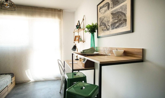 La résidence propose 155 lots, du studio au T2, chacun entièrement meublés pour faciliter ton quotidien grâce à une cuisine équipée (frigo, plaque vitrocéramique, micro-ondes, rangements, kit vaisselle, kit ménage), un bureau avec chaise, une table et deux assises, un lit en 120 x 200 cm (avec oreiller et couette), un kit linge, un placard, et une salle d'eau comprenant douche, meuble vasque, sèche-serviettes et toilettes. Les logements sont épurés pour laisser ta créativité s'exprimer et donc imaginer ton Home Sweet Home, ta casa, ton QG, ce que tu veux quoi ! Dans un style naturel sophistiqué, Kaïman présente une décoration où l'environnement semble reprendre ses droits. Des espaces qui se veulent synonyme de convivialité, d'échanges et de détente dans une ambiance chill. Les grands espaces communs ont été créés pour faciliter les rencontres et les échanges. Tu pourras ainsi profiter d'une grande salle commune comprenant : cuisine équipée, zone chill et son canapé, des espaces cowork et même un jardin collaboratif. Alors, t'attends quoi !? Mise à jour le 11/12/2025 Ref : 2487