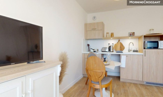 Cet appartement exceptionnel, neuf et décoré avec raffinement se situe au 3ème étage d'une résidence extrêmement calme et sécurisée. L'appartement est très lumineux. Il peut accueillir une personne et comprend une kitchenette tout équipée (réfrigérateur, four micro-ondes, plaques électriques, cafetière électrique, bouilloire, vaisselle et ustensiles de cuisines), une belle salle de bain avec douche à l'italienne ainsi qu'une télévision écran-plat.
