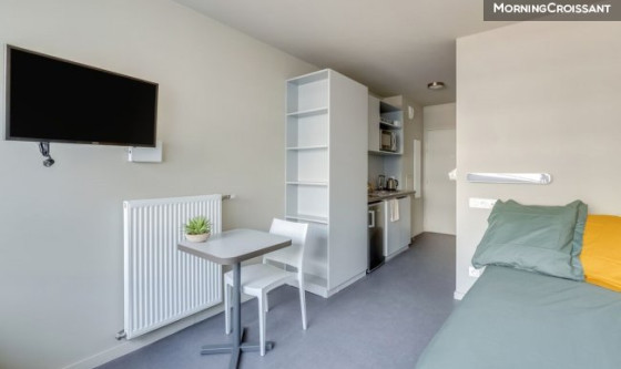 T1 entièrement meublé avec un lit simple de 90x200cm et ses tiroirs de rangement, un chevet mobile ou intégré à la tête de lit, un bureau avec caisson et fauteuil, une commode ou une grande penderie, une table de repas avec une chaise et de nombreux autres rangements. L'appartement est équipé d'une applique murale en tête de lit, d'une lampe de bureau, d'une TV sur support mural et d'un kit de lit (oreiller, couette, alèse). La kitchenette est entièrement équipée en vaisselle, ustensiles et appareils électroménagers y compris une bouilloire et un grille-pain. La salle d'eau privative comprend une grande douche, un meuble vasque, un radiateur sèche serviettes et un WC. Un kit de ménage est fourni pour le nettoyage de votre logement. Résidence neuve en cours d'achèvement pour étudiants, chercheurs et jeunes actifs au cœur du plateau de Saclay-Palaiseau, la Silicon Valley française, sur le quartier de l'Ecole Polytechnique à proximité des grandes écoles Institut Mines-Télecom, ENSAE, ENSTA Paris-Tech et Ecole Polytechnique. Proximité du quartier du Moulon avec ses écoles Supélec, Normale Sup de Cachan, Polytech Paris-Tech, ses IUT et ses Universités de Paris Saclay et Paris Sud. Conçue pour le confort des occupants dans un esprit campus, la résidence propose des logements aux typologies variées du studio 1 personne à la colocation de 4 personnes pour répondre aux besoins de chacun. Lumineux, fonctionnel, agencé pour maximiser l'espace, les locataires bénéficient d'un cadre idéal pour étudier, se reposer et s'amuser dans une résidence étudiante conviviale et innovante. L‘immeuble est relié à la fibre optique et délivre un accès wifi sécurisé haut débit illimité. Afin de faciliter la vie des résidents et favoriser le vivre-ensemble, la résidence propose différents espaces de socialisation, notamment à travers ses quatre espaces club qui comprennent des cuisines collaboratives avec tables d'hôtes ainsi que des bibliothèques communes et coins détente. Une buanderie semi-professionnelle (lave-linge, sèche-linge) est située près du hall d'entrée et accessible 7jrs/7 avec une centrale de paiement. La résidence est gérée par un manager et animée par un gestionnaire-animateur. Ce dernier peut vous accompagner dans certaines démarches et gérer vos courriers et colis en votre absence et également vous prêter du matériel. Votre emménagement est facilité, votre logement est prêt à l'emploi et le budget hébergement complétement maîtrisé. Les loyers s'entendent toutes charges comprises : l'eau, l'électricité, le chauffage, la taxe d'ordures ménagères, le wifi haut débit et les charges locatives de l'immeuble et des abords. Restent seulement à votre charge l'assurance habitation obligatoire et la taxe d'habitation si vous y êtes éligible. Les logements sont éligibles aux aides au logement de la CAF après étude du dossier.