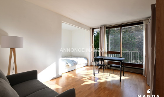 Logement Manda ! Studio meublé avec balcon sur jardin – Paris 14e – Avenue du Général Leclerc Loyer : 1 390 € CC / mois Surface : 30,67 m² Étage : 3ᵉ Type : Studio meublé Disponibilité : immédiate L'agence MANDA vous propose ce superbe studio meublé de 30,67 m², idéalement situé au 103, avenue du Général Leclerc, dans le 14ᵉ arrondissement de Paris. Ce logement lumineux et bien agencé se compose de : • un séjour confortable avec canapé, dressing et espace repas, • un coin nuit aménagé avec lit double, • une cuisine équipée (plaques, réfrigérateur, hotte aspirante, vaisselle rangements…), • une salle d'eau avec baignoire, • et un balcon ensoleillé offrant une belle vue dégagée sur jardin. Vous apprécierez son emplacement privilégié, dans un quartier agréable et bien desservi, à proximité des commerces, écoles et transports en commun (métro Alésia, bus, tramway). Les atouts du bien : • Studio meublé, prêt à emménager • Balcon avec vue sur jardin • Belle luminosité et calme • Quartier recherché et vivant • Disponible immédiatement Adresse : 103, Avenue du Général Leclerc, 75014 Paris Loyer mensuel : 1 390 € charges comprises Zone soumise à encadrement des loyers Pour rappel, cet appartement est situé dans une zone soumise à encadrement des loyers. Loyer de base : 941,57€ Loyer de référence majoré (Loyer de base à ne pas dépasser) : 1128,66€ Complément de loyer : 111,34€ Référence du bien : MANDA-69399