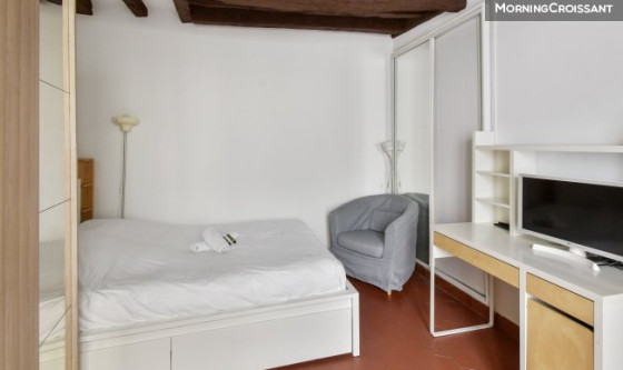 Ce studio parfaitement équipé et idéalement situé dans le 2e arrondissement de Paris pourra accueillir jusqu'à 2 personnes. Situé au coeur du 2e arrondissement de Paris, proche de nombreux monuments emblématiques et des commerces, vous logerez à l'endroit idéal pour profiter de votre séjour. Ce bel appartement de 23 m², situé au 4e étage (avec ascenseur), se compose de : - un pièce à vivre avec lit double, - une cuisine bien équipée (machine à café, grille-pain, bouilloire, micro-ondes, plaques de cuisson, réfrigérateur), - une salle de bain avec douche, - un bureau de travail, - aspirateur, sèche-cheveux, matériel de repassage, ventilateur, - Wi-Fi, TV et satellite. Des frais de gestion d'un montant de 357€ vous seront facturés. Ces frais comprennent l'état des lieux d'entrée et de sortie ainsi que les frais de ménage.