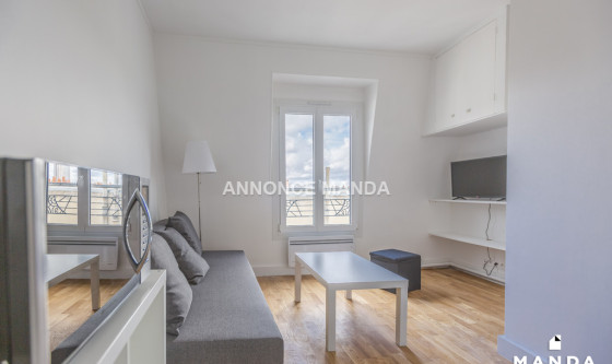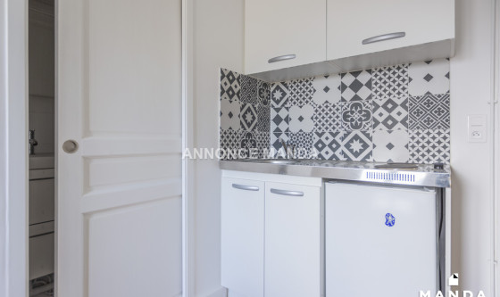 Logement Manda ! Manda vous propose ce magnifique studio meublé, situé au 6ᵉ étage d'un immeuble bien entretenu, 5 rue Rude – Paris 16ᵉ. À seulement 2 minutes à pied du métro Argentine (ligne 1) et 4 minutes de l'Arc de Triomphe, vous profiterez d'un emplacement exceptionnel, au cœur d'un quartier prisé et dynamique. La pièce principale est aménagée avec goût et comprend : • un canapé-lit, • une table basse, • des espaces de rangement, • un meuble TV, • une penderie, • et une fenêtre donnant sur une cour calme. Le coin cuisine est entièrement équipé : micro-ondes, plaque de cuisson, évier, réfrigérateur et rangements pratiques. La salle d'eau dispose d'un meuble vasque avec miroir et d'une cabine de douche moderne. Les toilettes se trouvent sur le palier. Le forfait de charges comprend : les ordures ménagères, l'entretien des parties communes, l'eau courante et les frais de gardiennage. Un studio refait à neuf, calme et fonctionnel, idéalement situé dans un quartier recherché du 16ᵉ arrondissement. N'attendez plus pour déposer votre candidature ! Pour rappel, cet appartement est situé dans une zone soumise à encadrement des loyers. Loyer de base : 425,1€ Loyer de référence majoré (Loyer de base à ne pas dépasser) : 509,6€ Complément de loyer : 0€ Référence du bien : MANDA-03429
