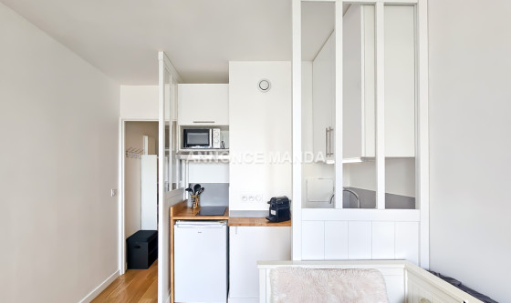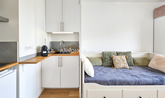 Logement Manda ! L'agence Manda vous propose ce joli studio meublé entièrement refait à neuf, situé dans le 19ème arrondissement. Cet appartement moderne et élégant est composé du séjour avec lit et table à manger, de la cuisine ouverte équipée et de la salle d'eau avec douche. Idéalement situé dans un quartier résidentiel paisible et bien desservi, le logement est à proximité des commerces, des écoles et des transports en commun. Disponible immédiatement, ce joli studio en location n'attend que vous ! Pour rappel, cet appartement est situé dans une zone soumise à encadrement des loyers. Loyer de base : 435,16€ Loyer de référence majoré (Loyer de base à ne pas dépasser) : 522,88€ Complément de loyer : 277,12€ Référence du bien : MANDA-70131