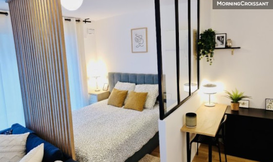 Soyez parmi les premiers à profiter de ce studio très spacieux et lumineux, situé dans une résidence neuve (livrée en 2025), offrant calme et sérénité dans un cadre moderne. L'appartement est en cours d'aménagement - pour l'instant, vous trouverez un plan et un rendu 3D pour vous donner une idée précise de l'agencement et de l'ambiance à venir. Il sera bientôt entièrement équipé avec : . un coin nuit confortable avec deux grandes armoires pour un rangement généreux, . un espace bureau pratique avec rangement - parfait pour étudier ou travailler à distance, . un espace de vie confortable avec un canapé convertible, idéal pour se détendre ou recevoir des invités, . une cuisine entièrement équipée avec un réfrigérateur, un four, une plaque de cuisson et un four à micro-ondes, . une salle de bains moderne avec douche à l'italienne, meuble-lavabo, sèche-serviettes et lave-linge. Et le clou : une terrasse de 9 m² orientée au sud, parfaite pour profiter des journées ensoleillées à l'extérieur. Disponible uniquement dans le cadre d'un bail mobilité - idéal pour les étudiants internationaux, les stagiaires, les chercheurs en visite ou les professionnels en mission de courte durée.