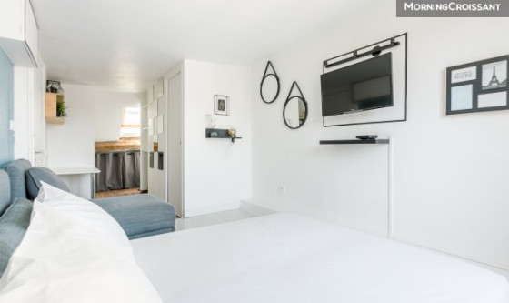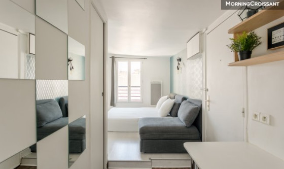Studio, refait à neuf par un architecte d'intérieur, dans une charmante copropriété. Calme assuré. Vue dégagée sur le jardin d'un hôtel particulier. Situé au 6ème étage sans ascenseur. Proche de toutes commodités. Quartier de Saint Germain des Près. Très bien desservi par les bus et les métros. Totalement équipé. Internet et Électricité inclus. Ce petit nid douillet n'attend que vous.
