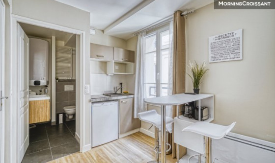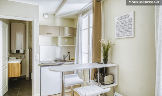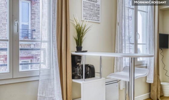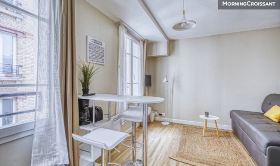 D'une surface de 16 m2, il dévoile un espace moderne pour vous sentir pleinement chez vous. Un canapé convertible en lit, une pièce de vie moderne avec placards de rangements, cuisine américaine, bar, tout a été pensé pour votre confort pour un séjour à Paris, même la présence d'une petite machine à laver pour rendre votre séjour plus agréable. La présence de la TV et d'internet en wifi vous permettra de prévoir vos rendez-vous sur la capitale en toute facilité. Une salle de douche moderne complète ce bien contemporain. Au 2ème étage sans ascenseur dans une petite rue à Proximité de la Tour Montparnasse Paris 14ème