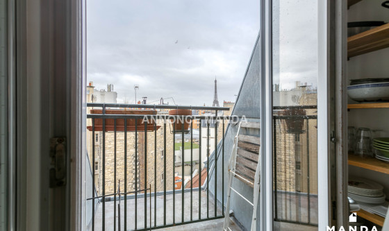 Logement Manda ! Au cœur du très prisé 15ᵉ arrondissement, découvrez ce studio meublé de 9 m² parfaitement optimisé, idéal pour un étudiant ou un jeune actif souhaitant profiter d'un pied-à-terre fonctionnel dans un quartier recherché. Un espace compact et bien pensé La pièce principale est aménagée avec : • Un canapé-lit confortable • Un bureau pour étudier ou télétravailler • Des rangements intégrés pour un quotidien organisé Un balcon rare pour cette typologie de bien, offrant un véritable petit extérieur agréable. Cuisine ouverte équipée Plaques de cuisson et four micro-ondes vous permettent de préparer facilement vos repas. Douche privative dans le logement Les WC sont situés sur le palier, pratique et bien entretenu. Localisation idéale À proximité immédiate des commerces, transports et lieux emblématiques de Paris, ce studio offre un cadre de vie pratique et dynamique. Un logement compact, malin et parfaitement situé. Il n'attend plus que vous ! Pour rappel, cet appartement est situé dans une zone soumise à encadrement des loyers. Loyer de base : 321,3€ Loyer de référence majoré (Loyer de base à ne pas dépasser) : 385,2€ Complément de loyer : 0€ Référence du bien : MANDA-70635
