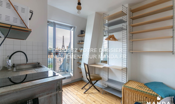 Logement Manda ! Visitez et déposez votre dossier uniquement sur notre plateforme ! Nous ne vous enverrons jamais le bail ou le RIB par mail - tout est sécurisé sur notre plateforme. Au cœur du très prisé 15ᵉ arrondissement, découvrez ce studio meublé de 9 m² parfaitement optimisé, idéal pour un étudiant ou un jeune actif souhaitant profiter d'un pied-à-terre fonctionnel dans un quartier recherché. Un espace compact et bien pensé La pièce principale est aménagée avec : • Un canapé-lit confortable • Un bureau pour étudier ou télétravailler • Des rangements intégrés pour un quotidien organisé Un balcon rare pour cette typologie de bien, offrant un véritable petit extérieur agréable. Cuisine ouverte équipée Plaques de cuisson et four micro-ondes vous permettent de préparer facilement vos repas. Douche privative dans le logement Les WC sont situés sur le palier, pratique et bien entretenu. Localisation idéale À proximité immédiate des commerces, transports et lieux emblématiques de Paris, ce studio offre un cadre de vie pratique et dynamique. Un logement compact, malin et parfaitement situé. Il n'attend plus que vous ! Pour rappel, cet appartement est situé dans une zone soumise à encadrement des loyers. Loyer de base : 321,3€ Loyer de référence majoré (Loyer de base à ne pas dépasser) : 385,2€ Complément de loyer : 0€ VOUS POUVEZ VISITER PLUS DE 3 000 LOGEMENTS (visite virtuelle + vidéos) ET DÉPOSER VOTRE CANDIDATURE SUR LE SITE WEB MANDA (REF : MANDA-70635) Référence du bien : MANDA-70635