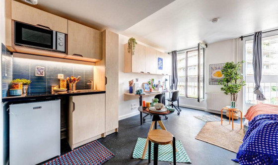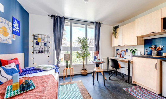 La résidence étudiante et jeunes actifs Paris Montsouris est idéalement située dans le 13ème arrondissement de Paris, à proximité des quartiers pittoresques et très appréciés de la butte aux cailles et de la cité florale. Elle se situe à deux pas de la ligne de RER B, ainsi que des lignes 6 et 7 du métro parisien. Cette résidence étudiante et jeunes actifs est à quelques pas du parc Montsouris, réputé pour être le lieu de détente favori des étudiants. Les logements pour étudiants et jeunes actifs de la résidence Paris Montsouris sont à proximité de l'emblématique Cité Universitaire. Complètement rénovée en 2023, cette résidence étudiante et jeune actif à Paris 13ème combine modernité et confort puisqu'elle se situe près de nombreux commerces et de nombreuses écoles, l'idéal pour profiter de la vie étudiante ou active ! Composée de 70 appartements disponibles à la location, la résidence pour étudiants et jeunes actifs Paris Montsouris, offre de nombreux studios équipés. Sa rénovation a d'ailleurs permis l'implémentation de plusieurs initiatives éco-responsables, comme une peinture thermorégulante et dépolluante ou encore des pommeaux de douche pédagogiques. Mise à jour le 03/12/2025 Ref : 3005