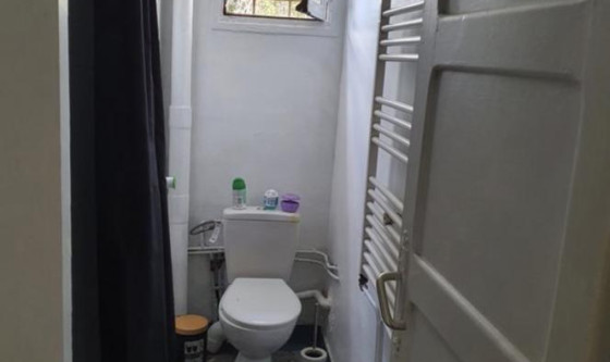 Studio 16m2 à 10mn à pied gare RER D Pierrefitte Stains commune St Denis comprenant 1 kitchenette et 1 frigo et 1 plaque électrique et 1 micro-onde et fenêtre double vitrage et chauffage électrique et 1 sdb séparée avec WC et meuble lavabo et douche et un jardin extérieur