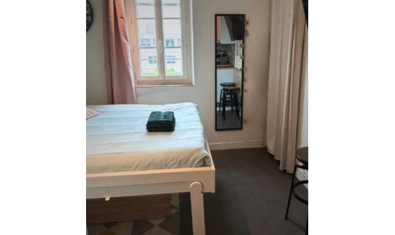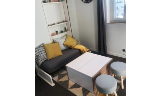 Charmant studio meublé de 13 m², fonctionnel et lumineux, situé dans un quartier calme de Rennes, proche des transports et commerces. Le grand atout de ce logement : un lit escamotable au plafond, qui libère totalement l'espace et permet de profiter d'un véritable coin salon en journée. Équipements > Lit escamotable 140×190 (se remonte au plafond, gain de place) > Petit salon modulable avec canapé/fauteuils lorsque le lit est relevé > Cuisine équipée : plaques de cuisson, micro-ondes, réfrigérateur avec compartiment congélateur, vaisselle et ustensiles > Espace repas : table pliante et chaises> Rangements optimisés (placard, étagères murales) > Salle d'eau avec douche, lavabo et WC Localisation Quartier agréable et bien desservi > Transports (métro et bus) à proximité