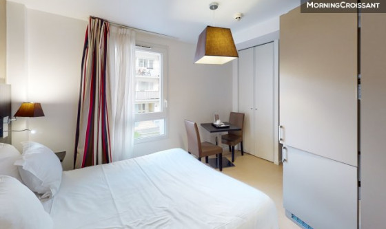Studio entièrement équipé et meublé, situé à 10 mn à pied du centre historique de Rennes et à proximité du centre d'affaires Le Mabilay. La gare TGV se trouve à 15 mn en bus et le Parc des Expositions de Rennes Aéroport à 15 mn. Dans le cadre d'une location saisonnière, en plus du loyer mensuel, une taxe de séjour d'un montant qui varie par nuit et par personne, sera à régler directement auprès de la résidence.