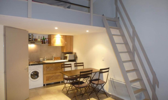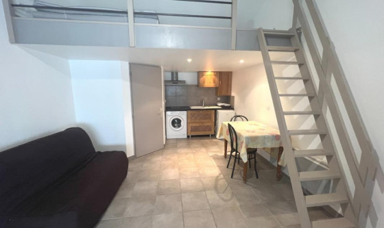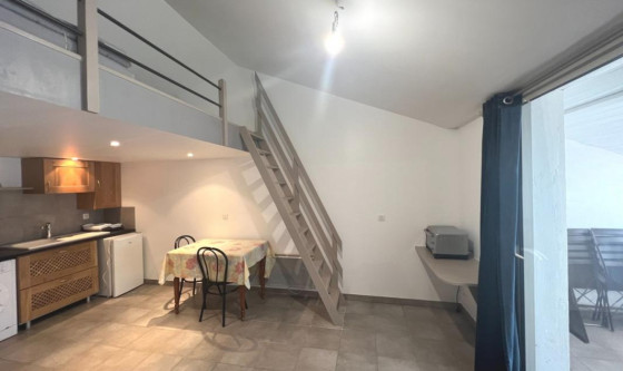 Centre-ville de Romans / Studio meublé au 1° étage sans ascenseur, de 18.20 m² offrant une partie jour avec cuisine équipée comprenant un petit frigo, un lave-linge, une plaque de cuisson et une hotte, une partie nuit en mezzanine, une salle d'eau avec WC et une belle terrasse sans vis à vis. DPE F/C. Estimation des coûts annuels d'énergie pour un usage standard entre 460€ - 660 €. Prix moyens des énergies indexés en 2021. Loyer hors charges : 425.00€ . Dépôt de garantie : 850€. Honoraires charge locataire : 145.60 € dont 54.60€ d'état des lieux. Les informations sur les risques auxquels ce bien est exposé sont disponibles sur le site Géorisques : www.georisques.gouv.fr. Agence de ROMANS- 04.75.05.10.95 -romans@paulclappeimmobilier.com