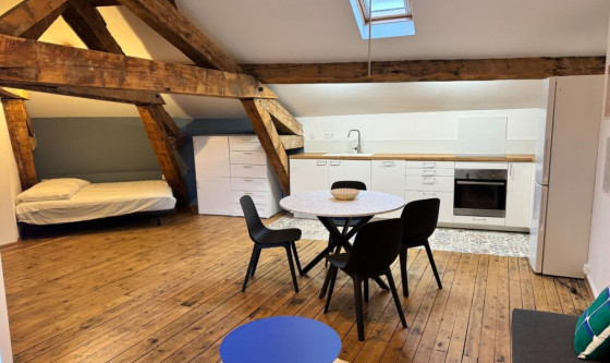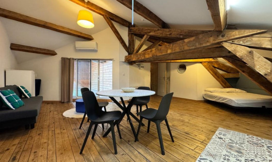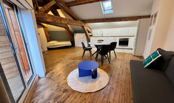 ROMANS CENTRE VILLE - Situé au 3ème étage sans ascenseur d'une petite copropriété, un studio meublé de 32.79m² habitables et de 57.91m² au sol, comprenant : une pièce de vie principale (avec lit double (140) et table à manger), ouverte sur une jolie cuisine équipée et aménagée (plaques, réfrigérateur, lave-vaisselle, etc), une salle d'eau avec WC et lave-linge. Le tout donnant sur une magnifique terrasse fermée de 15m². Logement étant aménagée sous les combles, la hauteur sous plafond est réduite. Climatisation réversible. Loyer hors charges : 490.00€ + 40.00€ de provisions pour charges avec régularisation annuelle (comprenant : TOM + charges locatives de copro + entretien climatisation). Dépôt de garantie : 980.00€. Frais honoraires à charge locataire : 262.32€ (dont 98.37€ de frais d'état des lieux). DPE : C/A. Montants estimés des dépenses annuelles d'énergie pour un usage standard entre 600€ et 860€. Prix moyen des énergies indexés en 2021, 2022 et 2023. Les informations sur les risques auxquels ce bien est exposé sont disponibles sur le site Géorisques : www.georisques.gouv.fr AGENCE DE ROMANS - 04.75.05.10.95 - romans@paulclappeimmobilier.com