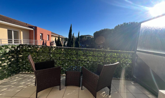 A 5mn de l'aéroport de Blagnac, dans une petite résidence récente sécurisée en lisière du golf international de Seilh, ce coquet appartement entièrement meublé situé au 1er et dernier étage entièrement rénové . Climatisé, aménagé avec goût il offre une large terrasse de 8m2 et un parking en sous sol ce studio de 26m² est disponible dès le 24 décembre 2025 Les informations sur les risques auxquels ce bien est exposé sont disponibles sur le site Géorisques : www. georisques. gouv. fr