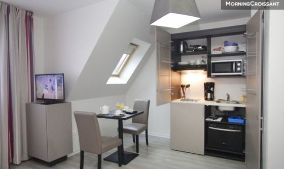 Studio meublé, équipé d'une salle de bain avec sèche-serviettes et WC, d'une kitchenette comprenant micro-ondes, plaque électrique, réfrigérateur, petit lave-vaisselle et d'une table + 2 chaises Dans le centre strasbourgeois, l'établissement se trouve derrière la Place des Halles. Vous y retrouverez plus d'une centaine de boutiques. Il sera pratique de visiter la ville avec à seulement deux pas une station de tramway « Faubourg de Saverne ». À votre disposition : - Parking couvert (avec participation) - Espace bien-être avec piscine (uniquement sur privatisation et réservation à l'avance) Dans le cadre d'une location saisonnière, en plus du loyer mensuel, une taxe de séjour d'un montant qui varie par nuit et par personne, sera à régler directement auprès de la résidence.