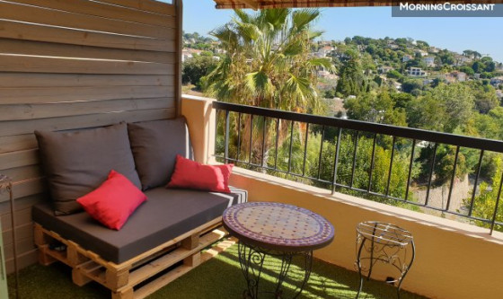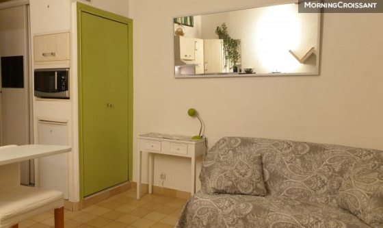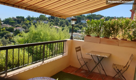 Loue adorable studio sis sur les hauteurs de Golf-Juan (quartier Super-Cannes) proche du village de Vallauris, entre Cannes et Juan les Pins, à 5mn des plages. Situé dans un écrin de verdure, au calme intégral et sans aucun vis-à-vis, le studio bénéficie d'une très agréable terrasse de 8m², avec une magnifique vue mer et montagne. La résidence se trouve dans un Hameau de style provençal au milieu d'un domaine boisé de 6 hectares, entièrement fermé et sécurisé (Gardien, portail avec code et caméra). Elle dispose d'une grande piscine (12x20m), d'un verger, ainsi que d'une place de stationnement privée. Le logement est joliment meublé et suréquipé : TV écran plat, lave-linge, lave-vaisselle, four/micro-ondes, plaques à induction, mixeur, aspirateur…vous n'avez plus qu'à poser vos valises ! Proches commerces et toutes commodités (arrêt de bus à 100m). Loyer : 620 euros/mois comprenant les charges locatives (charge de copropriété/internet/Edf). Disponible à partir de début septembre jusqu'au mois de juin.