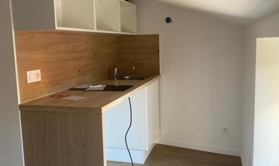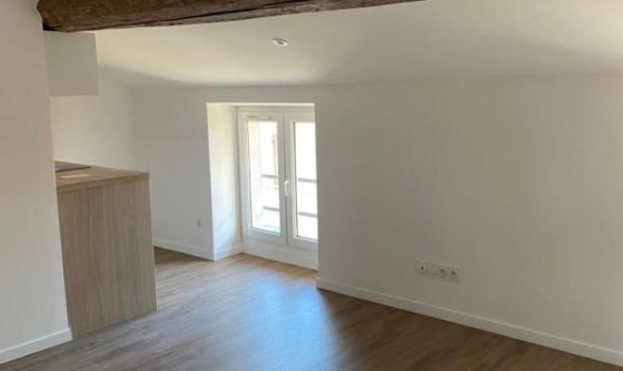 VÉNISSIEUX Centre dans quartier calme à proximité des commerces et bus, dans bâtiment entièrement rénové, au 2ème étage, A LOUER studio d'une surface de 14 m² CARREZ mansardé atypique avec poutres apparentes, comprenant pièce à vivre en parquet avec coin cuisine meublée équipée plaque et hotte, 1 chambre en parquet, salle d'eau avec cabine de douche, sèche serviette et WC. belles prestations intérieures apppartement disponible de suite chauffage ind électrique eau chaude cumulus eau froide individuelle