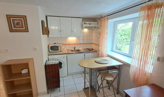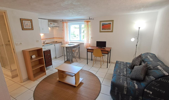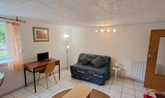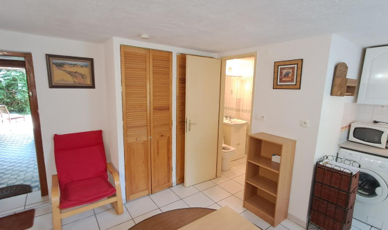 Au RDC d'une maison individuelle (avec verdure), studio entièrement meublé comprenant pièce principale avec kitchenette équipée, sdb avec douche et wc. Electricité, Chauffage, Eau, Ordures ménagères sont compris dans les charges. Loyer: 350 € + 100 € de provisions sur charges.