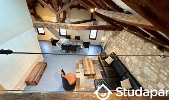 Description : Découvrez ce loft atypique et meublé, niché au 2ᵉ étage d'un immeuble de charme en pierre du XVIIᵉ siècle, en plein cœur d'Angoulême, dans un cadre paisible et calme. Disponible fin août — DPE : D (performance énergétique). Caractéristiques : • RDC : Grand salon/séjour lumineux avec murs en pierre et poutres apparentes, salle à manger, cuisine entièrement équipée, salle de douche moderne, WC séparés, chambre indépendante avec literie 160x200 et rangements intégrés. • À l'étage : Espace mansardé pouvant servir de coin lecture ou couchage d'appoint, bureau séparé idéal pour le télétravail, et grenier de rangement. Ambiance industrielle et matériaux de qualité : • Salon : Canapé cuir avec méridienne, table basse, fauteuil design, table à manger et meuble TV style industriel. • Chambre : Literie neuve 160x200, rangements intégrés. • Cuisine : Plaques, four, hotte, réfrigérateur, lave-vaisselle, petit électroménager inclus. • Salle de douche : Équipée d'un lave-linge séchant. Sécurité : Immeuble équipé d'un vidéophone pour plus de sérénité. Tarifs : Loyer charges comprises Provision pour l'eau (électricité à la charge du locataire) Dépôt de garantie : 2 mois de loyer hors charges, soit 1 600 €. Garant demandé si nécessaire. Situation exceptionnelle : Entre la Place du Palet et la Place du Général Resnier, à proximité immédiate des commerces et à 15 minutes à pied de la gare TGV. Proche des Ecoles. Transports en commun accessibles en 5 minutes. Updated on 18/11/2025 Mise à jour le 18/11/2025