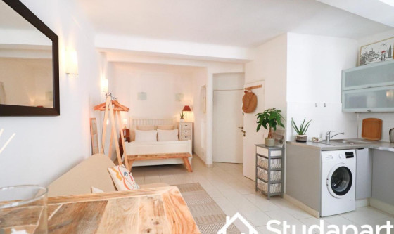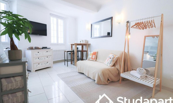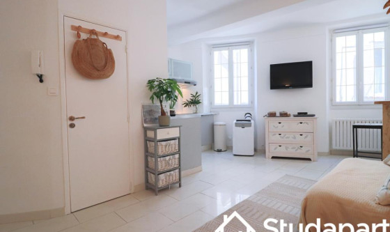 Cosy Studio apartment available for rent in centre of old Antibes, in street of Provençal marche. 5 min walk to bus or train station. Available for short or longer stays (until end May). Newly renovated, fully equipped with double bed and double sleeper couch. Separate bathroom with shower. Updated on 18/11/2025 Mise à jour le 18/11/2025