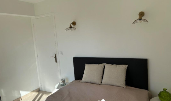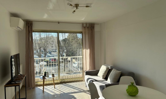 Appartement. 1er étage vue mer, entièrement climatisé. Parking privé dans l'immeuble. Ascenseur. 2 pièces meublé entièrement refait, 1 chambre, 1 salle de bains et une cuisine séparée. A louer. Loyer charges incluses. Updated on 18/11/2025 Mise à jour le 18/11/2025