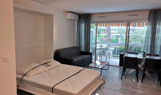 Studio meublé 34m2 totalement rénové en mai 2021. Tout est NEUF (classé 2** au Gîtes de France) Résidence le Mas du Tanit à Juan les Pins. Bail Étudiant Grande pièce à vivre avec cuisine ouverte sur séjour. Terrasse de 11m2 aménagée expo EST: coin repas + coin détente (canapé d'angle en résine). Très lumineux et calme. Piscine dans résidence. Beau dressing aménagé. Climatisé Jolie vue sur le parc et la piscine de la résidence. Lit armoire avec sommier (gain de place) en 140 cmX 200cm avec matelas de 20cm d'épaisseur ( neuf). Canapé lit convertible 140cm X 200cm avec matelas de 16 cm d'épaisseur (neuf). BOX TV (120 chaînes) / WIFI + chauffage collectif + eau chaude + eau froide intégré dans loyer. À 5 min à pied de toutes commodités (gare, commerces, boulangerie, plages : plage du PONTEIL Antibes à 500m et plage de La PINÈDE Juan les Pins à 700m, centre ville d'Antibes à 700m et 300m du centre de Juan les Pins, arrêt de bus, médecins, à 700 m du jardin de la Pinède.... Très bien équipé et NEUF : ustensiles de cuisine, grand Four, micro-ondes, Lave linge, crêpe-party, bouilloire, cafetière nespresso, cafetière à filtre, grille pain, bol mixeur, cuiseur de riz électrique, vaisselle, grande TV, literie, aspirateur, grande douche italienne..... Beau dressing aménagé. Possible couple d'étudiant Possible d'autres PHOTOS et Vidéo par messagerie Updated on 19/11/2025 Mise à jour le 19/11/2025