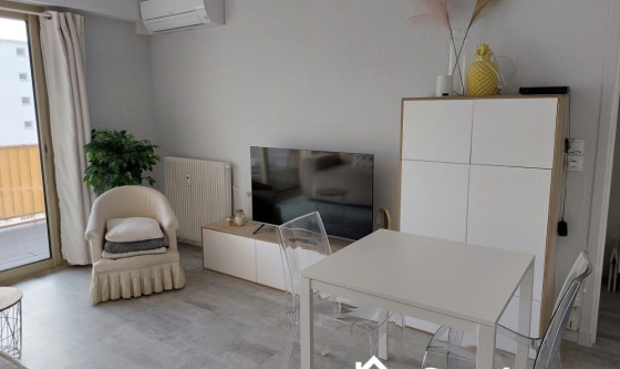 Appartement de type Studio au 5ème étage avec ascenseur . Idéalement située a 10min à pied de la gare de Jaun les Pins, 5 min de la plage et 2 minutes des commerces et arrêts de bus. L'appartement se compose d'une grands cuisine équipée ( plaques induction, tassimo, four, micro onde, lave linge ) et aménagée. 1 Grand salon avec canapé convertible, table, chaises, télevision. 1 grande salle de bain avec baignoire. 1 grande terrasse avec salon de jardin,. Appartement climatisé. Loyer mensuel Charges comprises ( eau, électricité et internet ) Dépôt de garantie : 780€ Updated on 19/11/2025 Mise à jour le 19/11/2025