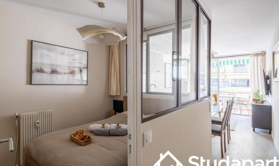 Appartement meublé 2 pièces – Bail étudiant (démarrant Septembre) – Juan-les-Pins Situé en plein cœur de Juan-les-Pins, à seulement 3 minutes à pied de la gare et des plages, cet appartement lumineux de 30 m² est parfaitement adapté pour un(e) étudiant(e) à la recherche de confort, de praticité et d'un cadre de vie agréable. L'appartement se compose de : - Un grand séjour moderne avec baies vitrées donnant sur un balcon de 8 m², idéal pour se détendre ou étudier en plein air - Un espace nuit calme et bien agencé avec un lit double + un canapé-lit 140 cm dans le séjour pour accueillir ponctuellement - Une cuisine ouverte et équipée : plaques à induction, four, micro-ondes, frigo, bouilloire, machine à café, toaster, lave-vaisselle - Une salle de bain moderne avec douche à l'italienne et lave-linge - Fibre optique pour un accès Internet rapide et stable, idéal pour les cours en ligne ou le télétravail - Climatisation réversible pour un confort toute l'année L'appartement est situé à proximité immédiate de commerces, transports en commun, et à deux pas de la plage : un cadre de vie idéal pour un étudiant souhaitant allier études et qualité de vie. Disponible à la location de janavier à mai 2026 Updated on 03/12/2025 Mise à jour le 03/12/2025