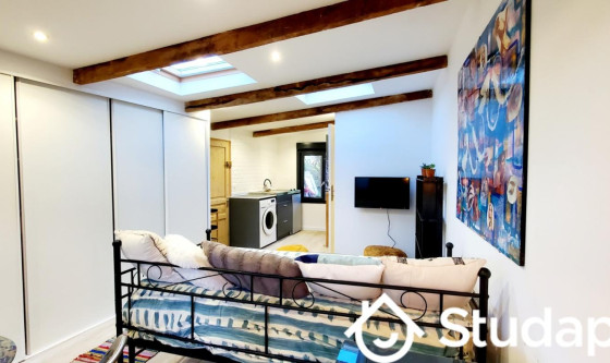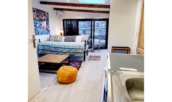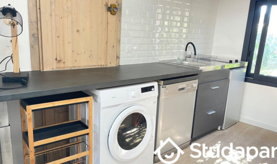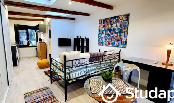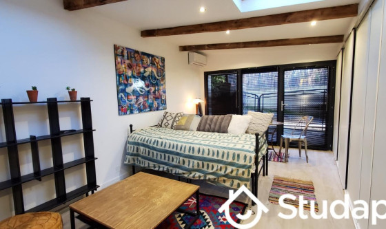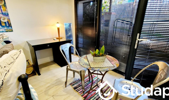 Beau studio neuf , ancien atelier d`artiste, donc très lumineux. Avec fenêtres de toit et grande baie vitrée. Climatisation réversible. Au rez de jardin d`une villa. Quartier résidentiel, à 10mn à pied de la gare, du port, et 15 mn du centre-ville, et à 50m du bus tram direct Sophia Antipolis. Très bien équipé : climatisation réversible, lave-linge séchant, lave-vaisselle, lit extensible en 160 cm, dressing, etc... Appartement pour une personne seulement si la location est supérieure à 2 mois. Un peu plus cher en juillet et en août si courte durée. Électricité non incluse. Updated on 18/11/2025 Mise à jour le 18/11/2025
