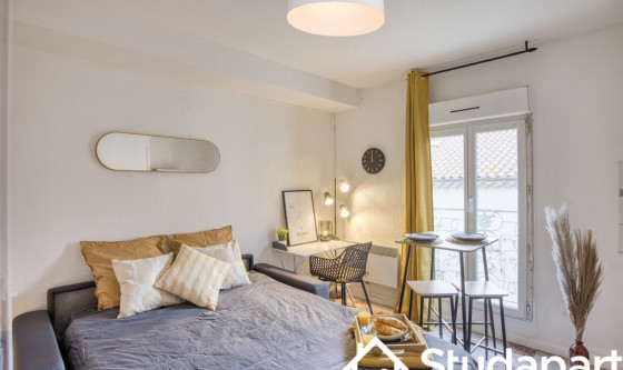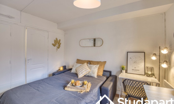 Studio tout confort meublé et entièrement équipé. Sécurisé et calme. Coin bureau Vrai canapé lit Espace de cuisine Armoire encastrée Salle d'eau (cabine de douche) 3 min à pied Carrefour City 3 min à pied allées Paul Riquet 7 min à pied IUT/Faculté Updated on 23/01/2026 Mise à jour le 23/01/2026