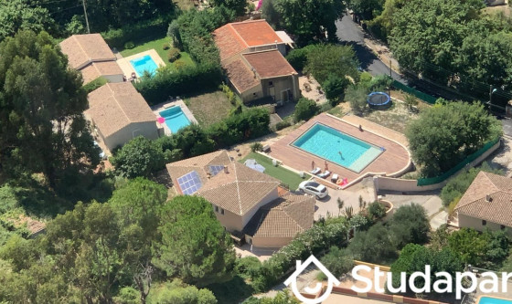Location Etudiante Meublée 1-2 pièces en Rez de jardin de villa individuelle. Entrée indépendante. Meublé 2-4 couchages, Climatisé. Dans les hauteurs de Biot avec une vue dégagée, au calme, proche du village de Biot. Véhicule obligatoire. Salon : 1 placard de rangement, 1 BZ, 1 télévision écran plat, 1 Climatisation. Cuisine américaine équipée : Plaque induction, Lave Linges Sèche-linge, Lave Vaisselles, combiné Four et Micro-ondes, Frigo congélateur, Nespresso, grille-pain, Barbecue … 1 Table et 1 fer à repasser. Chambre : 1 placard à vêtements, 1 lit 160x200, draps non fournis. Salle de douche : 1 WC suspendu, 1 douches à l'italienne (120x90) et 1 lavabo, 1 Sèche serviettes, serviettes non fournies. WIFI Energie : GES : A (moins de 5) Classe énergie : C (de 91 à 150) Extérieur aménagé : Parking privatif fermé sécurisé pour 1 voiture ou 1 moto Terrasse couverte avec salon de jardin Commun. Terrasse privative 20 m² environ Piscine commune et bains de soleil communs. Grand jardin privatif, clos, et jeux d'enfants (balançoire, trampoline). Terrain de boules. Wifi extérieur Situation : Orientation sud sud-ouest Commodités et loisirs : • Sophia-Antipolis à 10 min • Plages Antibes – Villeneuve Loubet (10 min), Cap d'Antibes (25 min) • Parc de Marineland, Aquasplash, Golf aventure, La ferme du far west 4 km Antibesland, parc d'attraction avec manèges et toboggans 4 km, Parc de Vaugrenier 4 km … • Verrerie de Biot 1 km, Golf de Biot 2 km, Musé Fernand Léger 3 km • Station de ski Geôlière (50 min), Isola 2000 (1h45) • Village médiéval de Biot 2 km, Antibes Juan Les Pins 5 km, Nice Promenade (25 min) et Cannes 17 km (Croisette 30 min), Monaco 35 km, Vintimille 45 Km (frontière italienne avec son Grand Marché, 40 min). • Aéroport Nice Côte d'Azur 12 km (20 min), Gare SNCF Antibes 4 km. • Autoroute échangeur d'Antibes (10 min) • Stations de bus : Nice (ligne 230) ; Antibes (100,1,9,22) ; Sophia Antipolis(11). Ecoles de Sophia à proximités : Eurecom, Skema, IDRAC, INRIA, Polytech, ENSMP, Université de Nice Sophia-Antipolis, Atman, Lycée technique, IUT, lycée Horticole… Bus à proximité pour Sophia, Antibes centre, NICE. Gare de Biot. Electricité aux proratas de la consommation du locataire Charges comprises incluant : Place de parking fermée, Bip d'accès à la propriété, Accès Wifi, Eau froide et Eau chaude, piscine. Updated on 19/11/2025 Mise à jour le 19/11/2025