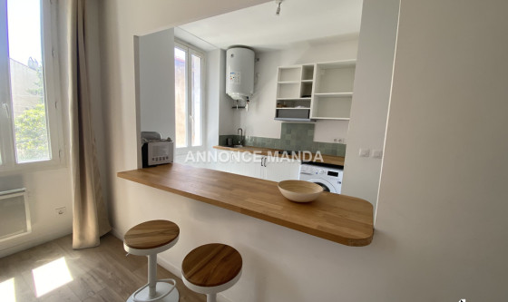 Logement Manda ! Manda vous propose ce joli T1 bis meublé de 35 m², situé rue Bernard à Marseille, à deux pas de la gare Saint-Charles et proche de toutes les commodités. Refait à neuf, l'appartement offre un espace salon lumineux et un coin nuit confortable, bientôt séparé par une élégante verrière pour plus d'intimité. La cuisine semi-ouverte est équipée, la chambre dispose d'un lit double et d'une armoire, et la salle de bain comprend une cabine de douche et des WC. Un cocon moderne et bien agencé, idéal pour poser ses valises au cœur de Marseille. Référence du bien : MANDA-32947