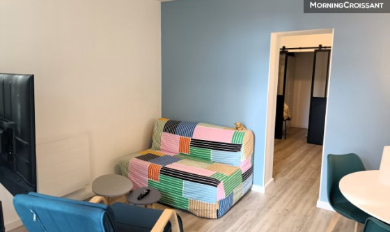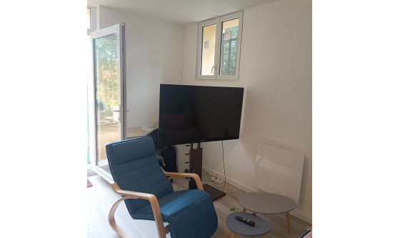 Grand séjour lumineux de 15m2 avec canapé-lit ouvrant sur une cuisine de 7m2, plus un coin nuit de 6m2 isolé par une élégante verrière. Sympa, avec accès rez-de-jardin DPE C Location meublée Proximité transports en commun à pied : bus à 5 mns, métro B à 12 mns, Bellecour et Perrache +/- 30 mns, Lyon Sud à +/- 15 mns à pied ou en métro… Proximité commerces : Carrefour market à 5 mns à pied, Monoprix à 15 mns à pied… Loyer 850 € incluant charges locatives 35 € (eau y compris eau chaude, entretien parties communes et quote-part TOM) Electricité non comprise facturée au réel selon relevé de consommation (sous-compteur) Nouveau logement DPE « C » (estimation besoins en énergie annuels 530 à 770 €) Émission de gaz à effet de serre « C » livré fin juillet 2025 dans une maison venant de terminer une RGE de grande ampleur Eau chaude fournie par le logement principal et compris dans les charges Radiateurs connectés NIRVANA NÉO dernière génération de marque ATLANTIC Prestations de qualité : espace nuit avec lit 140x190 cm matelas 30 cm espace jour avec canapé lit IKEA bureau IKEA TV QLED UHD 4K 55 pouces (139,7 cm) avec barre de son intégrée ; cuisine équipée (grill micro ondes & plaque à induction & Frigidaire congélateur & machine à laver le linge & table 4 à 6 personnes & vaisselle & draps…) Chauffage électrique individuel par radiateurs neufs de dernière génération Disponible début décembre 2025 Possibilité parking intérieur en surface avec supplément