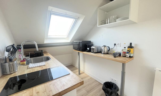 RENNES, à deux minutes à pied de la gare, un appartement T1 bis meublé de 18.11m² carrez et 37.79m² au sol comprenant : Une pièce de vie, une cuisine aménagée et équipée (frigo + plaques), une salle d'eau avec wc. L'eau froide est comprise dans les charges. Disponible de suite. « Les informations sur les risques auxquels ce bien est exposé sont disponibles sur le site Géorisques : www.georisques.gouv.fr »