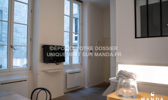 Logement Manda ! Visitez et déposez votre dossier uniquement sur notre plateforme ! Nous ne vous enverrons jamais le bail ou le RIB par mail - tout est sécurisé sur notre plateforme. L'agence Manda vous propose ce joli studio meublé, situé à Bordeaux. Cet appartement est composé du séjour avec canapé, de la cuisine ouverte équipée, du coin chambre avec lit double et de la salle d'eau avec douche. Idéalement situé dans un quartier central de Bordeaux et au charme exceptionnel, le logement est à proximité des commerces, des écoles et des transports en commun. Eau courant à la charge du locataire. Disponible immédiatement, ce joli studio en location n'attend que vous ! Pour rappel, cet appartement est situé dans une zone soumise à encadrement des loyers. Loyer de base : 748,0€ Loyer de référence majoré (Loyer de base à ne pas dépasser) : 897,6€ Complément de loyer : 0€ VOUS POUVEZ VISITER PLUS DE 3 000 LOGEMENTS (visite virtuelle + vidéos) ET DÉPOSER VOTRE CANDIDATURE SUR LE SITE WEB MANDA (REF : MANDA-54444) Référence du bien : MANDA-54444