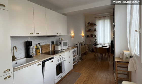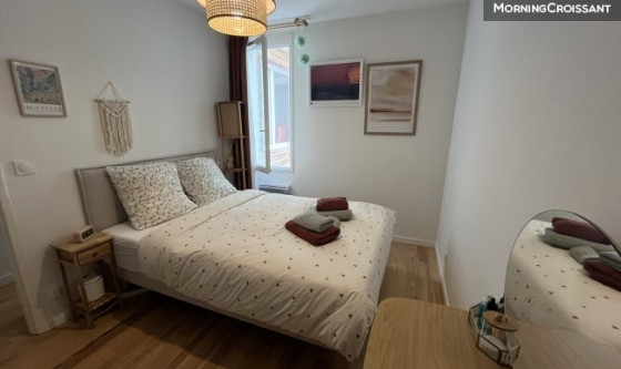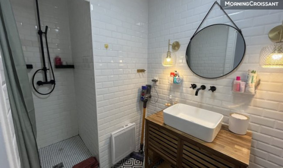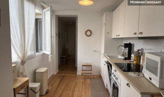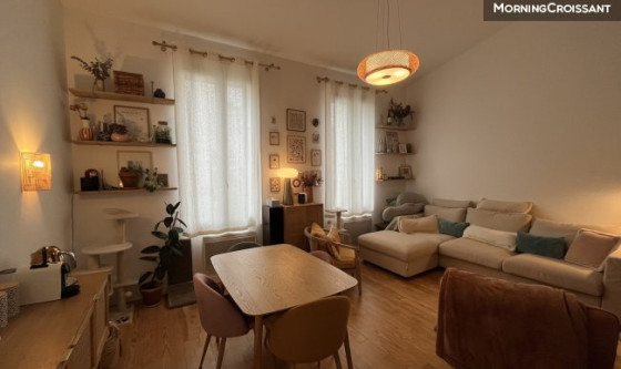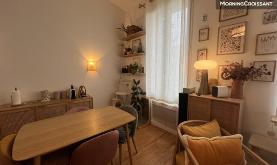Propose appartement de deux pièces à la location. Il comprend : une entrée, un wc séparé, une chambre, une salle de douche, une cuisine équipée et un séjour avec belle hauteur sous plafond. Une grande bibliothèque donne du charme à l'appartement. Situé à 5 minutes de la gare, c'est idéal pour les digital nomades.