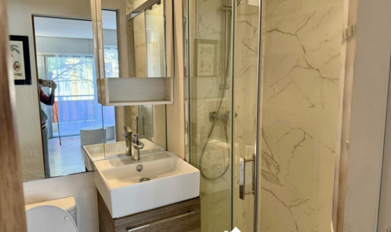 Location 3 mois maximum. Disponible immédiatement. Ideal étudiant. Appartement 2 pièces 30m2 situé au 2 ème étage avec ascenseur. Idéalement situé, rue Merle, 06400 Cannes, à 5 minutes à pied de la gare ferroviaire et de la gare routière. Commerces et restaurants à proximité. L'appartement est situé en plein centre-ville, mais les fenêtres donnent sur le jardin en vous assurant le repos tranquille. L'appartement est composé d'une salle de séjour et d'une chambre à coucher. Sol en marbre dans le séjour et parquet dans la chambre, volets électriques, air conditionné réversible dans le séjour et dans la chambre, un coin cuisine, une salle de douche et toilette. Le séjour et la chambre donnent sur la terrasse 5 m2 vue jardin permettant de manger à l'extérieur. Pas de garage, ni parking. 990€ par mois, charges comprises (l'eau froide, l'eau chaude, internet) +EDF. Updated on 09/12/2025 Mise à jour le 09/12/2025