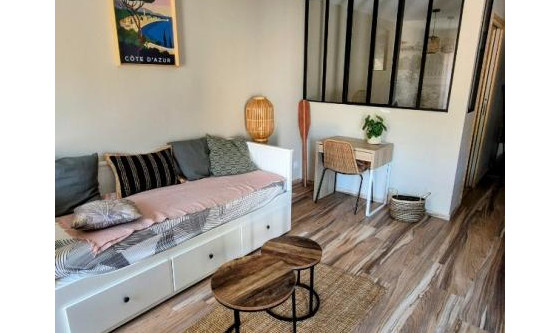 Bienvenue dans notre beau T2 au cœur de Carqueiranne Situé en centre-ville, à quelques pas du port pittoresque et des plages, ce cocon lumineux et décoré avec soin est idéal pour un séjour en famille, entre amis ou même dans un cadre professionnel. Un espace confortable et bien pensé Dès l'entrée, vous serez séduits par la grande entrée avec ses placards de rangement pratiques. La chambre, pleine de charme, doté d'un lit en 140X190, est mise en valeur par une élégante verrière donnant sur le salon. Elle est équipée d'une commode avec tiroirs pour un rangement optimal. Un salon spacieux et lumineux Deux grandes ouvertures offrent une belle vue sur la colline et baignent le salon de lumière naturelle. Pour votre confort, le salon est équipé de volets roulants manuels, d'une télévision, ainsi que d'un lit peigne 160X200 confortable composé de deux matelas. Une cuisine sur mesure, ouverte et entièrement équipée Conviviale et pratique, la cuisine ouverte sur le salon vous permettra de profiter de vos proches tout en cuisinant. Vous y trouverez : Une table de bar idéale pour vos repas, une machine à café Nespresso, une bouilloire, un four, des plaques à induction, un réfrigérateur avec congélateur, un lave-vaisselle, ainsi que toute la vaisselle et les ustensiles nécessaires pour préparer de délicieux repas. Une salle de bain moderne et fonctionnelle Updated on 15/10/2025 Mise à jour le 15/10/2025