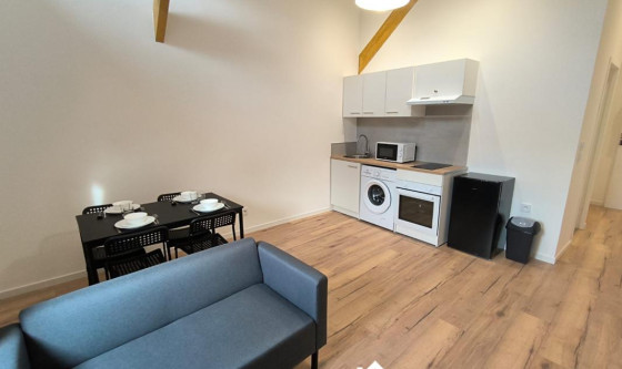 Aux portes de CASTRES, à ROQUECOURBE. Loue charmant T2 entièrement meublé. Raccordé à la fibre optique, au 2ème et dernier étage. Très belle hauteur sous plafond avec poutres apparentes. Très lumineux avec trois fenêtres dans la pièce de vie. Idéalement situé à ROQUECOURBE. Grand parking en face, Castres à 5 min en voiture. Tous commerces et transports en commun à proximité. Loyer CC, caution 2 mois de loyers HC. Updated on 18/11/2025 Mise à jour le 18/11/2025