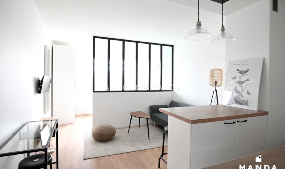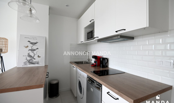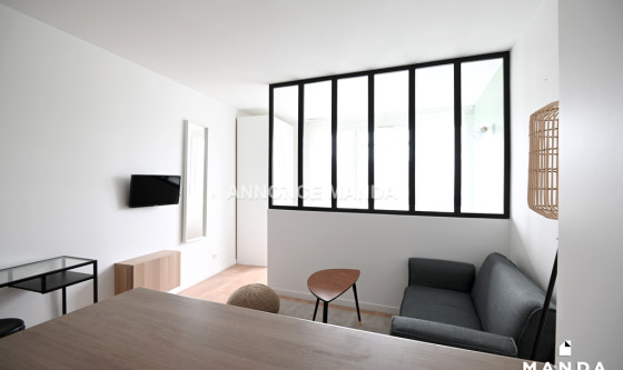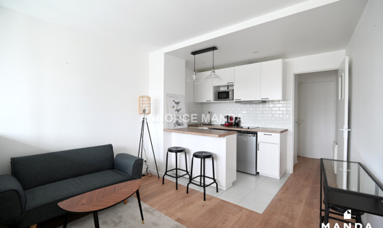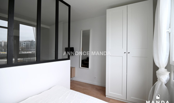 Logement Manda ! A quelques pas de la gare d'Asnières-sur-Seine, Manda propose un T1 en location quai du Maréchal Joffre. Situé au premier étage avec ascenseur, cet appartement est loué meublé. L'entrée ouvre sur un dégagement avec placard intégré. La pièce de vie est lumineuse et se compose de l'espace salon, d'un coin bureau et d'un espace repas face à la cuisine. La cuisine est ouverte et entièrement équipée. La chambre est séparée du séjour par une cloison avec verrière et dispose d'un lit double et d'une armoire à dressing. La salle de bain se compose d'une cabine de douche, d'un meuble-vasque et d'un sèche-serviettes chauffant. Les WC sont dans la salle de bain. Une cave complète cet appartement. Très belles prestations pour ce T1 en location : logement en parfait état, lumineux, calme, bien agencé, entièrement meublé et équipé, rangements, cave... Situé à quelques pas da la gare d'Asnières-sur-Seine, vous serez à proximité des commerces et le quartier est calme. Idéal pour un couple, ce charmant studio n'attend plus que vous ! Référence du bien : MANDA-19228